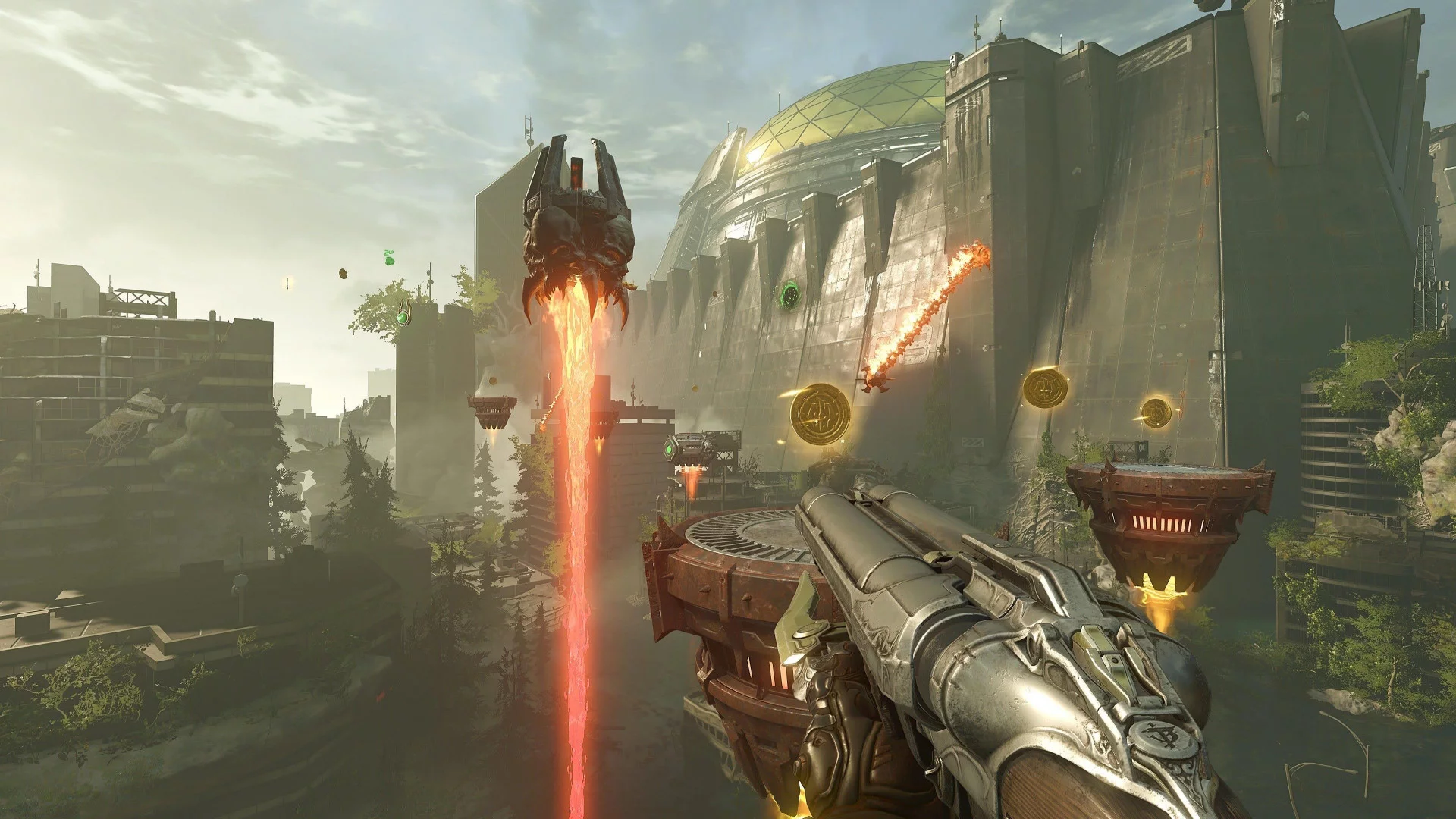 - Система "Убей, чтобы выжить" — добивайте демонов финтезами для здоровья, патронов и брони.